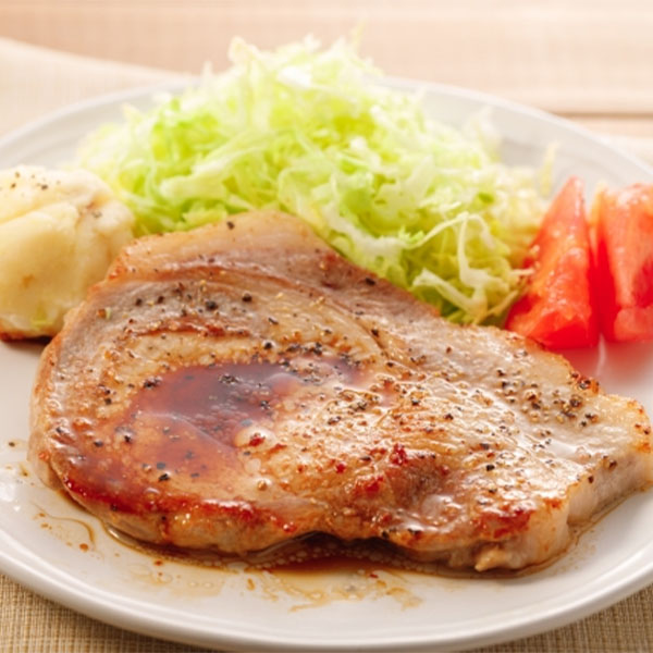 - 1牛もも肉ブロックの両面に塩コショウをふります。